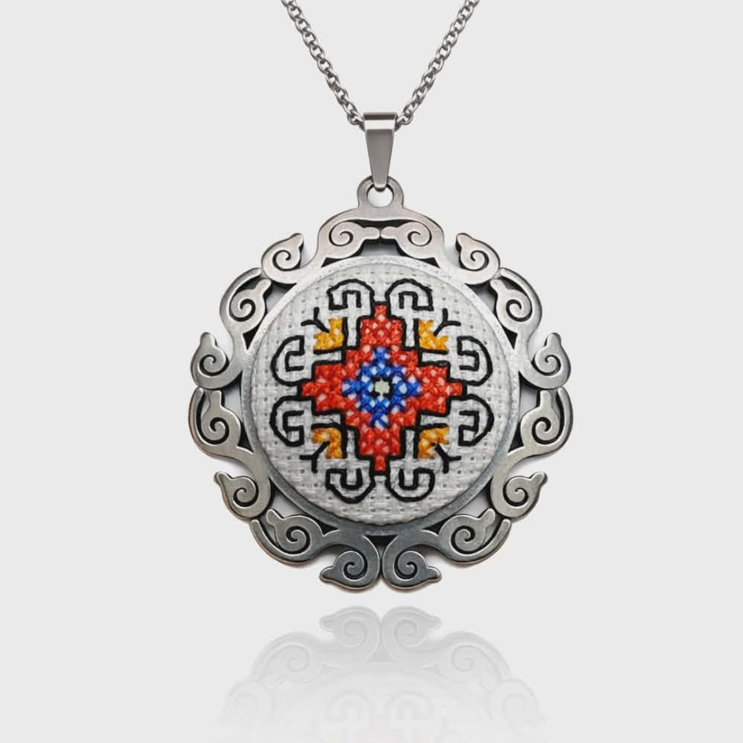 Това бижу съчетава силата на българската шевица изтънчен дизайн. За разлика от нашата мивималистична серия, тук шевицата е монтирана в прецизен метален обков, който се придава на корието завършен, по-масивен и официален вид.